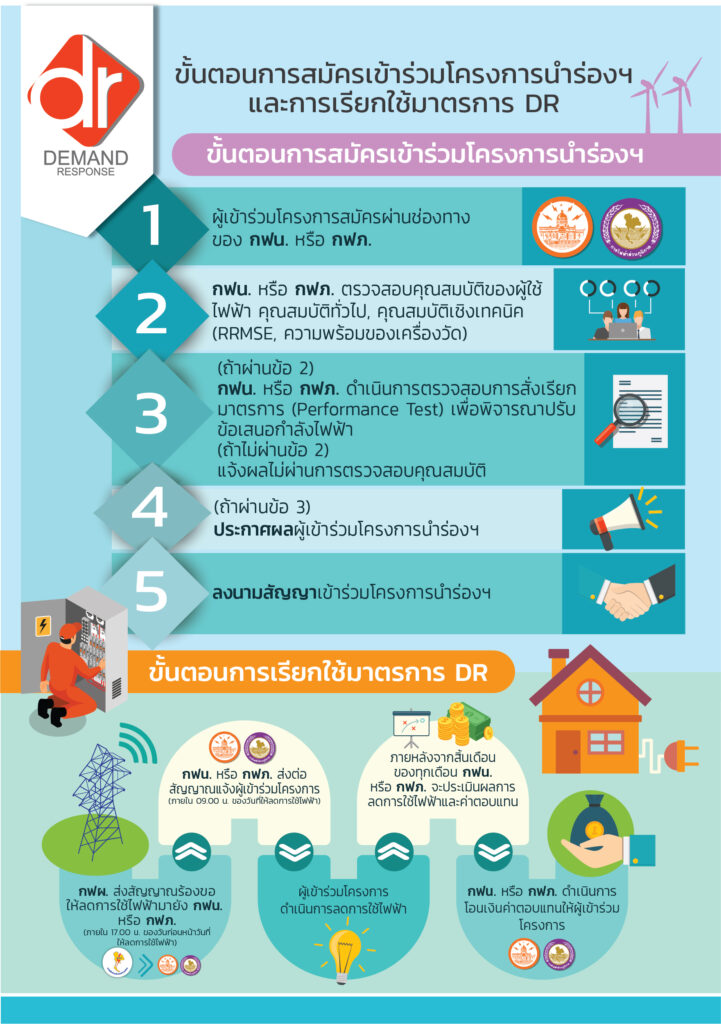 ขั้นตอนการสมัครเข้าร่วมโครงการนำร่องฯและการเรียกใช้มาตรการ DR TTD admin 3 ปี ago Related posts รูปแบบการดำเนินการ Demand Response ในบริบทของประเทศไทย by dradmin 4 ปี ago รูปแบบการแข่งขันและกลไกราคา การตอบสนองด้านโหลด by dradmin 5 ปี ago เปิดรับสมัครผู้สนใจเข้าร่วมโครงการนำร่องการตอบสนองด้านโหลด ปี 2565 – 2566 by TTD admin 3 ปี ago