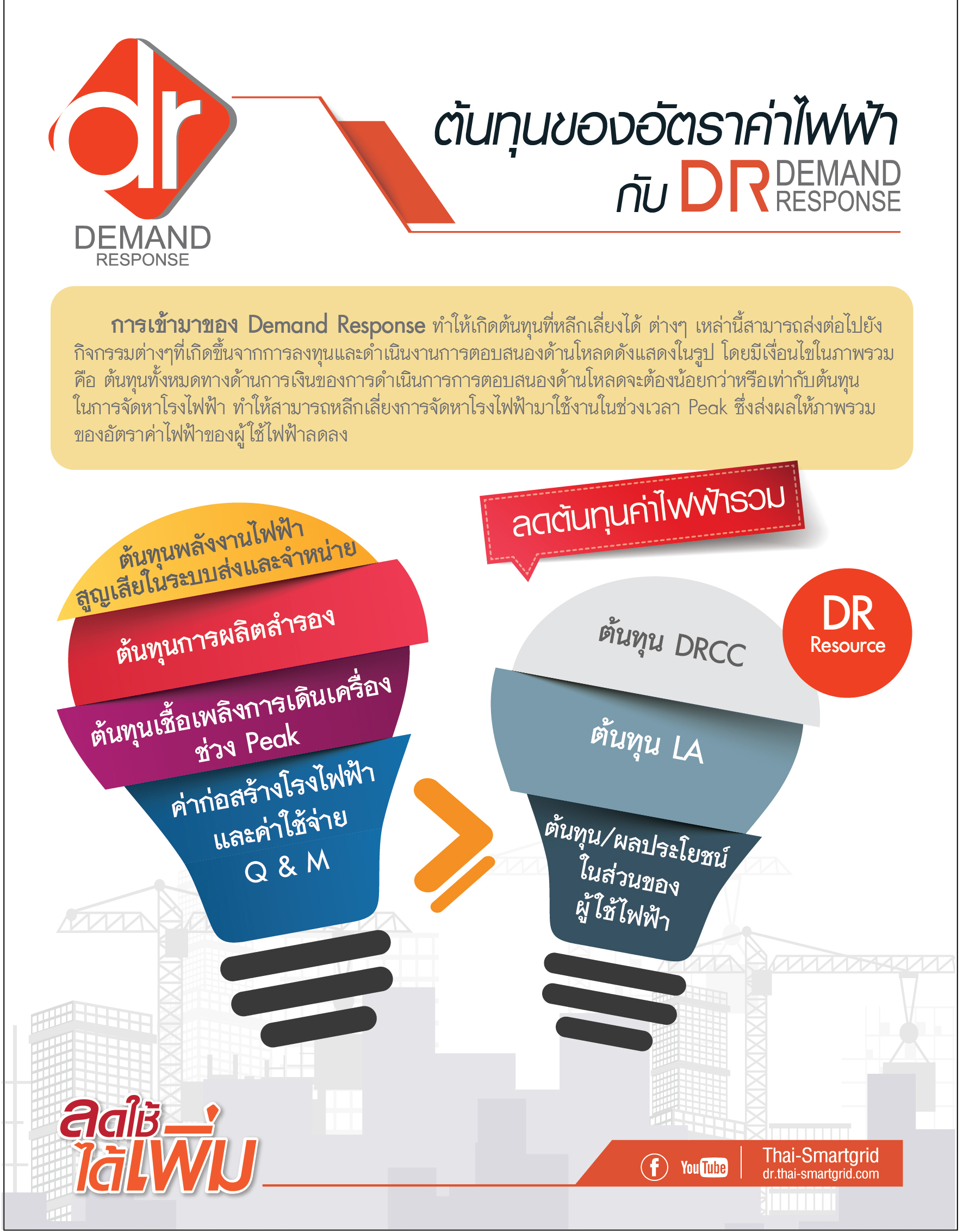 การเข้ามาของ Demand Response ทำให้เกิดต้นทุนที่หลีกเลี่ยงได้ สามารถส่งต่อไปยังกิจกรรมต่าง ๆ ที่เกิดขึ้นจากการลงทุนและดำเนินงานการตอบสนองด้านโหลดดังแสดงในรูป โดยมีเงื่อนไขคือต้นทุนทั้งหมดทางด้านการเงินของการดำเนินการการตอบสนองด้านโหลดควรจะต้องน้อยกว่าหรือเท่ากับ ต้นทุนในการจัดหาและเดินโรงไฟฟ้าและต้นทุนอื่น ๆ ของระบบ ทำให้สามารถหลีกเลี่ยงการจัดหาโรงไฟฟ้ามาใช้งานในช่วงเวลาความต้องการใช้ไฟฟ้าสูงสุด (Peak) ซึ่งส่งผลให้ภาพรวมของอัตราค่าไฟฟ้าของผู้ใช้ไฟฟ้าลดลง