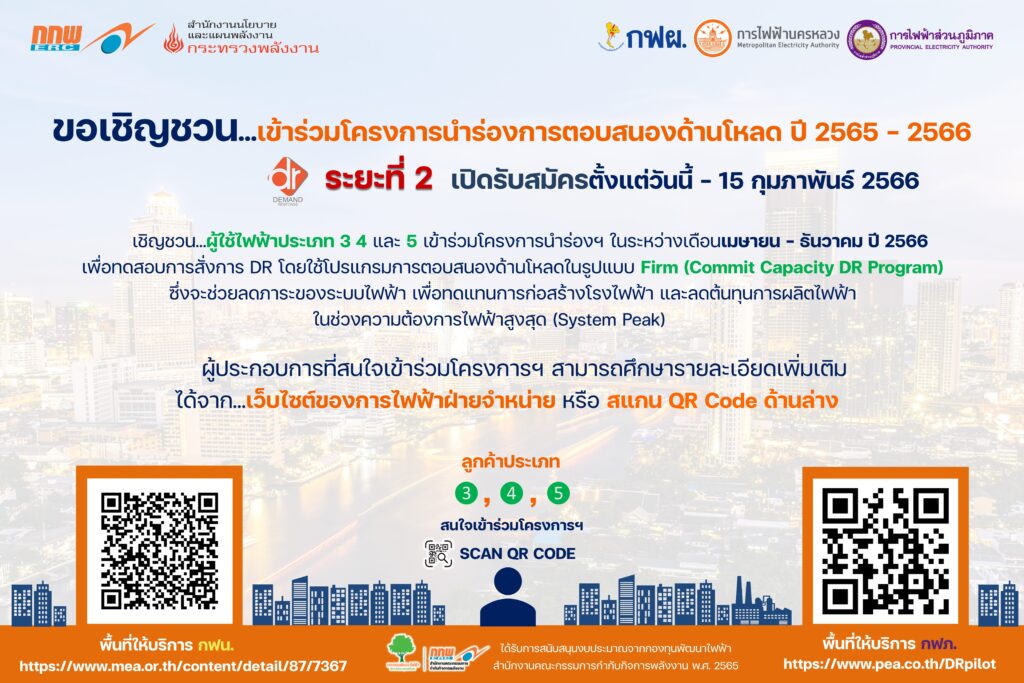 ขอเชิญชวน….เข้าร่วมโครงการนำร่องการตอบสนองด้านโหลด ปี 2565- 2566 ระยะที่ 2 เปิดรับสมัครตั้งแต่วันนี้ – 15 กุมภาพันธ์ 2566 TTD admin 3 ปี ago Related posts ขอเชิญชวน…เข้าร่วมโครงการนำร่องการตอบสนองด้านโหลด ปี 2565 – 2566 ปิดรับสมัครวันที่ 7 ตุลาคม 2565 by TTD admin 4 ปี ago ขอเชิญชวน….เข้าร่วมประชุมเพื่อเชิญชวนผู้ประกอบการเข้าร่วมโครงการนำร่องการตอบสนองด้านโหลด ปี 2565-2566 ปิดรับลงทะเบียนภายในวันศุกร์ที่ 16 ก.ย. 2565 #2 by TTD admin 4 ปี ago ขอเชิญชวนร่วมงานสัมมนาเพื่อนำเสนอรายละเอียดโปรแกรมการตอบสนองด้านโหลด “DR Road Show” by dradmin 5 ปี ago